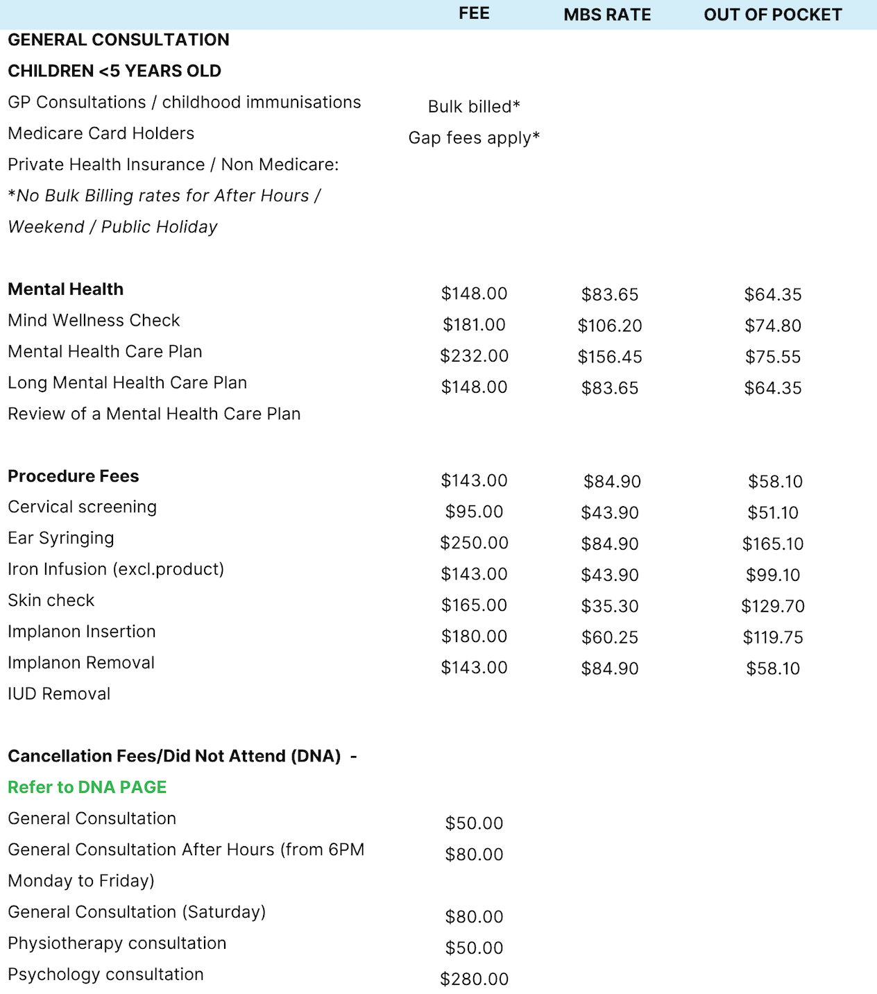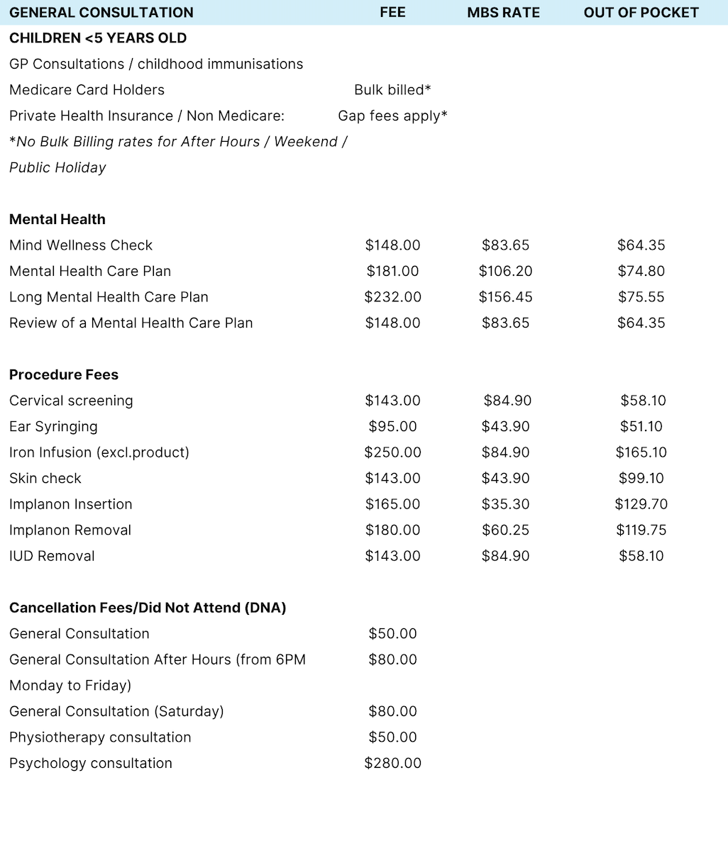 General Practice Fees